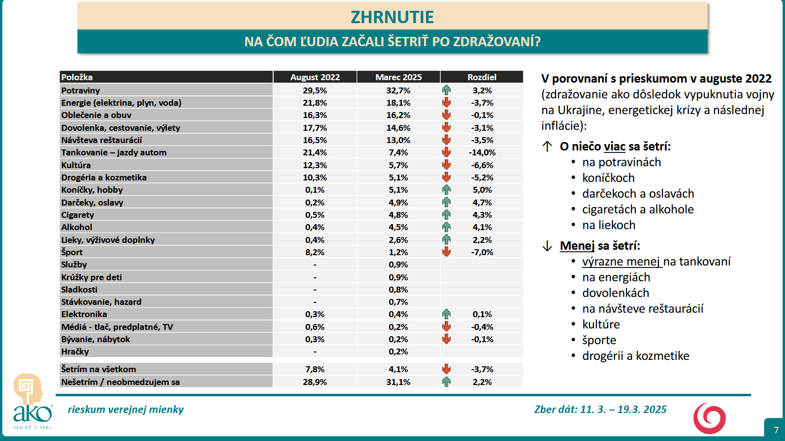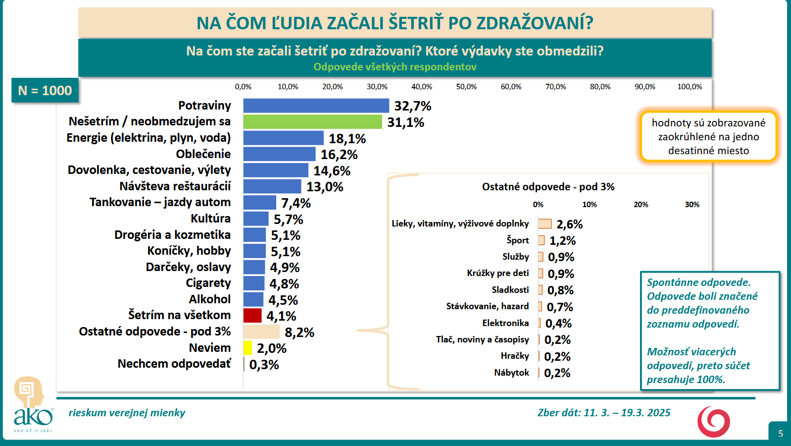 BRATISLAVA / Agentúra AKO pre Televíziu JOJ spracovala prieskum verejnej mienky na tému, na čom ľudia najviac šetria. Zber dát sa uskutočnil: 11. 3. – 19.3. 2025.