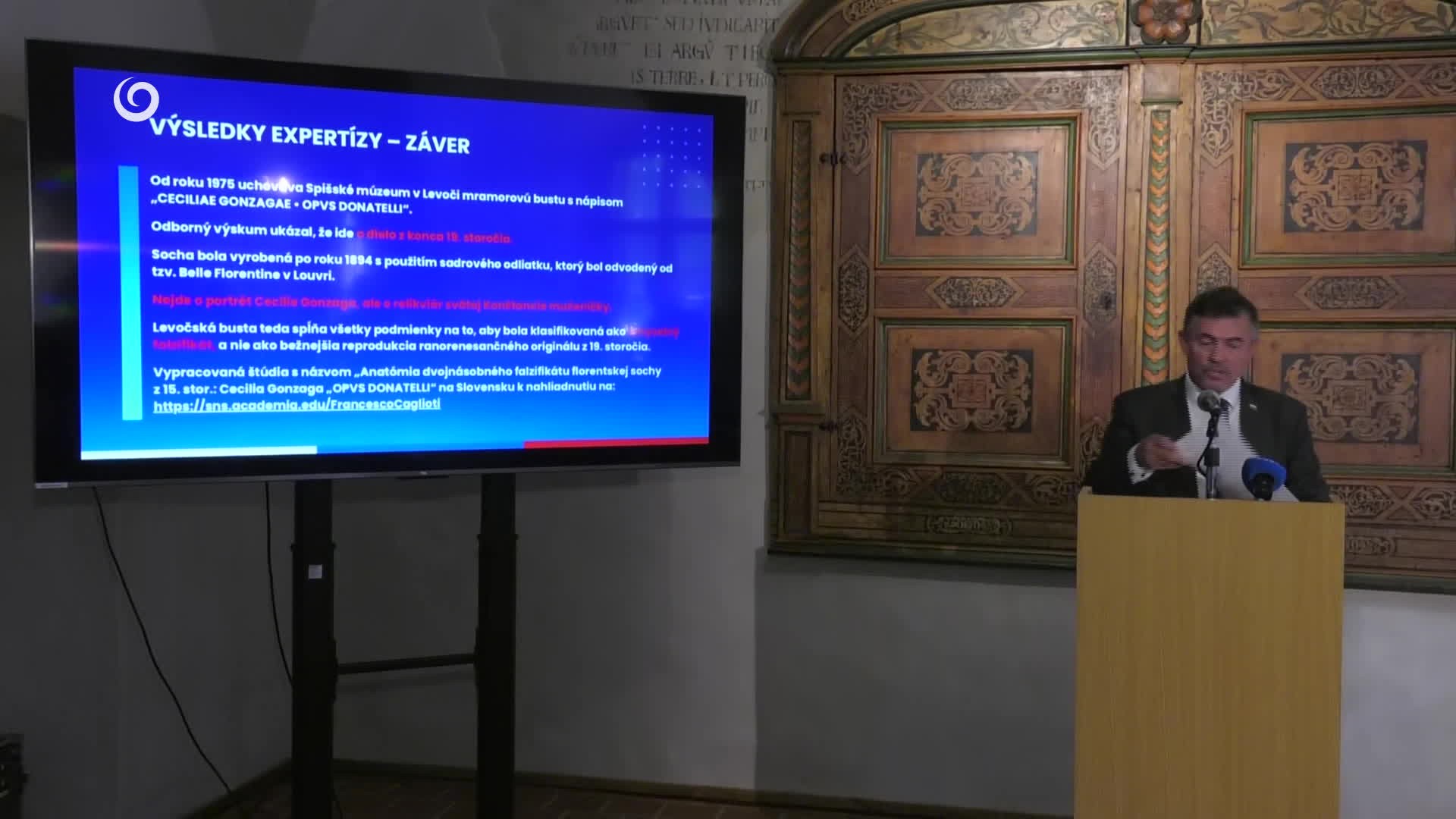 LEVOČA / Predstavitelia rezortu kultúry vrátili bustu, ktorej autorstvo sa pripisovalo renesančnému sochárovi Donatellovi, do Levoče. Zároveň Lukáš Machala odprezentoval výsledky expertízneho výskumu pravosti, podľa ktorých ide o falzifikát z 19. storočia.